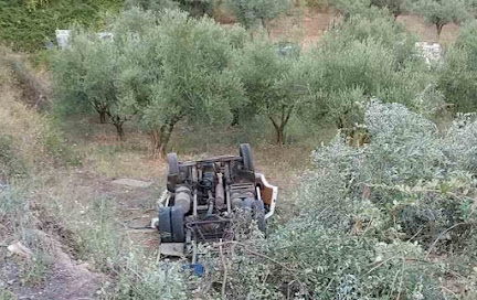 από εκτροπή και ανατροπή φορτηγού οδικής βοήθειας, σε παρακείμενο λιοστάσι στην περιοχή Σχίνος Αγρινίου.