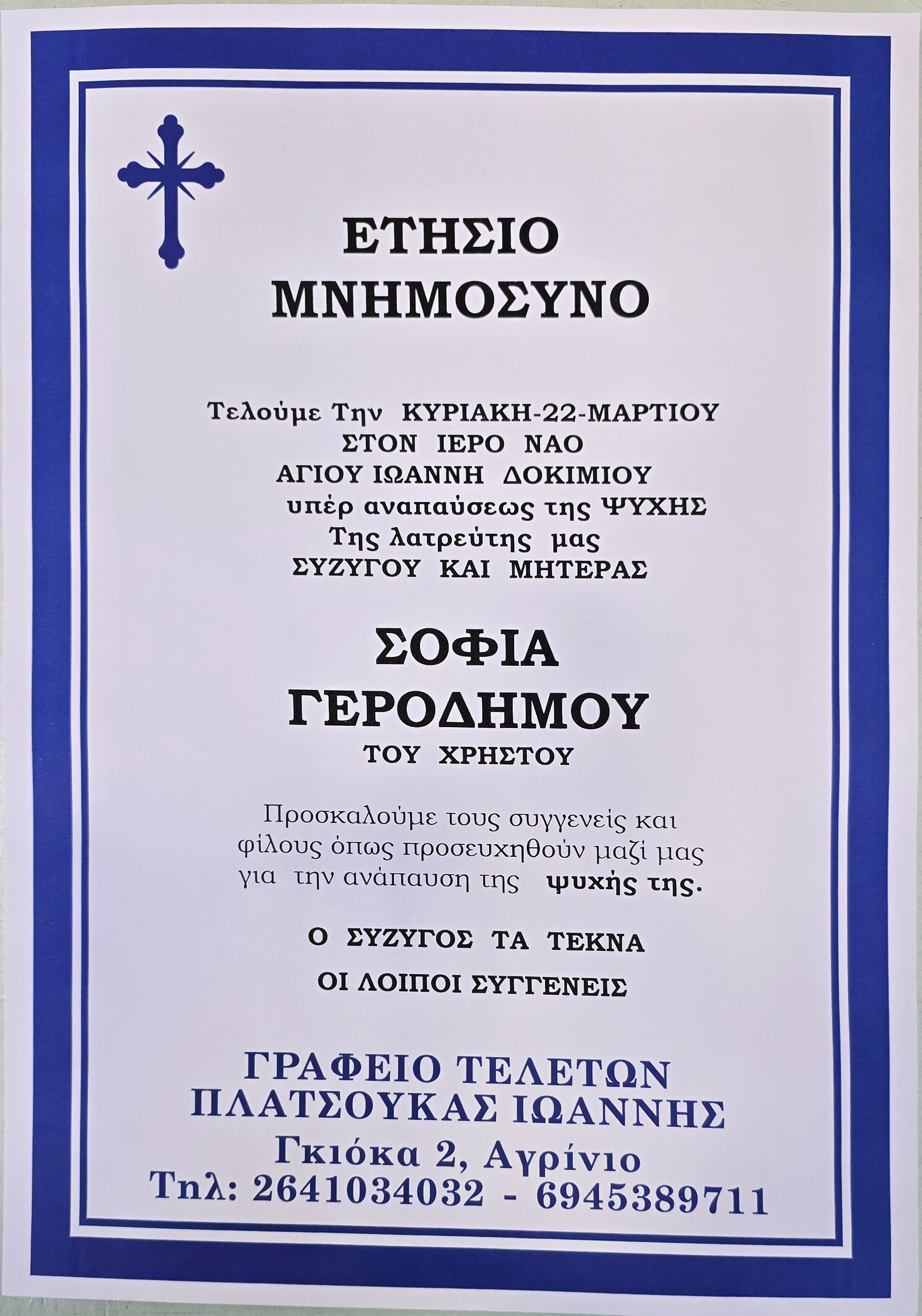 ΜΝΗΜΟΣΥΝΟ 22/3/2026 – ΣΟΦΙΑ Χ. ΓΕΡΟΔΗΜΟΥ ΕΤΗΣΙΟ