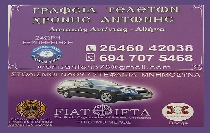 | ΕΠΩΝΥΜΙΑ : | ΓΡΑΦΕΙΑ ΤΕΛΕΤΩΝ ΧΡΟΝΗΣ ΑΝΤΩΝΗΣ |