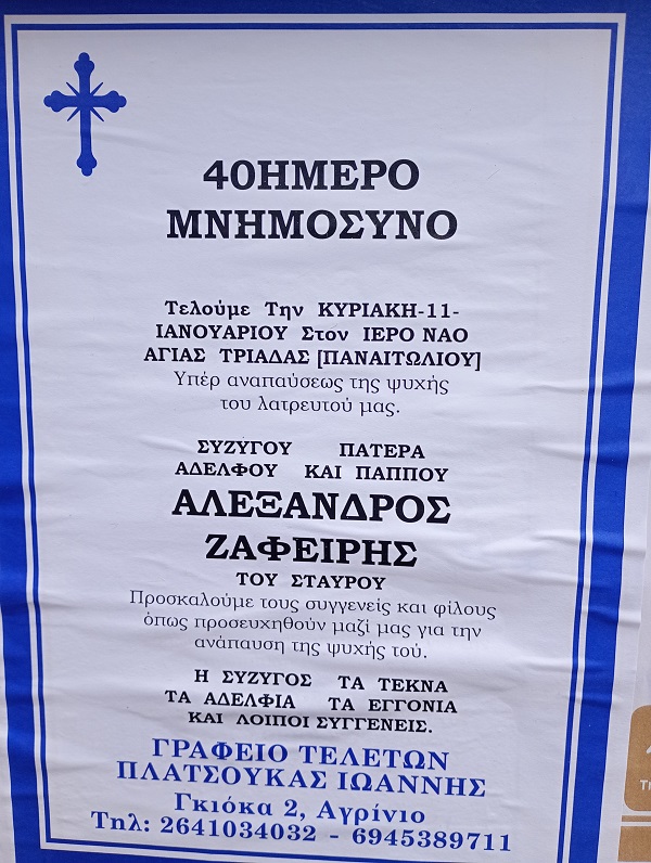 ΑρχικήΜΝΗΜΟΣΥΝΑΑιτωλοακαρνανίαςΜΝΗΜΟΣΥΝΟ 11/1/2026 - ΑΛΕΞΑΝΔΡΟΣ Σ. ΖΑΦΕΙΡΗΣ