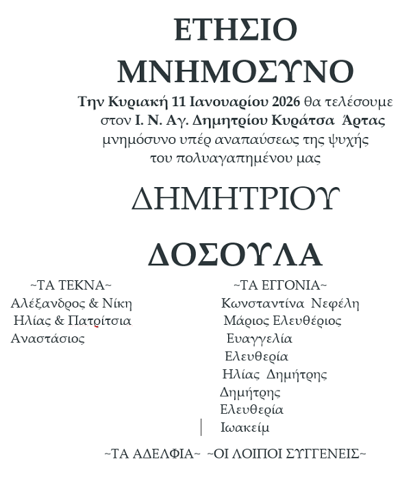 ΜΝΗΜΟΣΥΝΟ 11/1/2026 – ΔΗΜΗΤΡΙΟΣ ΔΟΣΟΥΛΑΣ ΕΤΗΣΙΟ