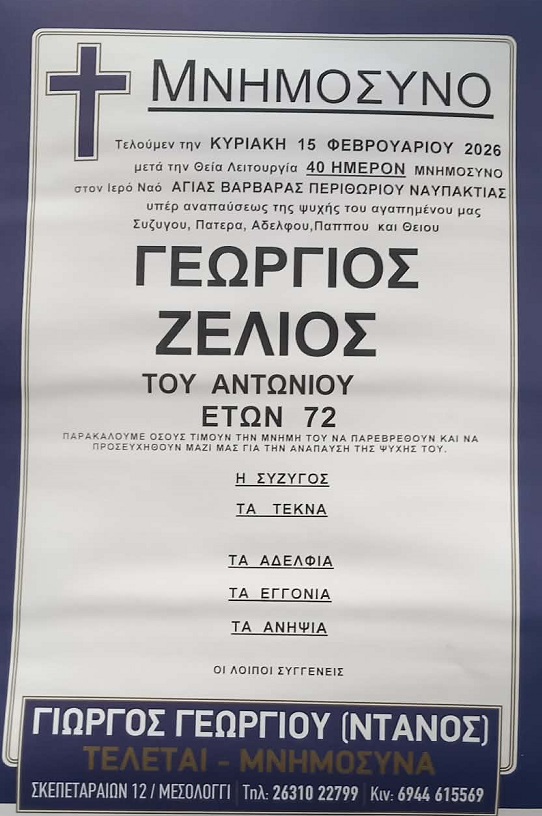 ΜΝΗΜΟΣΥΝΟ 15/2/2026 – ΓΕΩΡΓΙΟΣ Α. ΖΕΛΙΟΣ 40ΗΜΕΡΟ