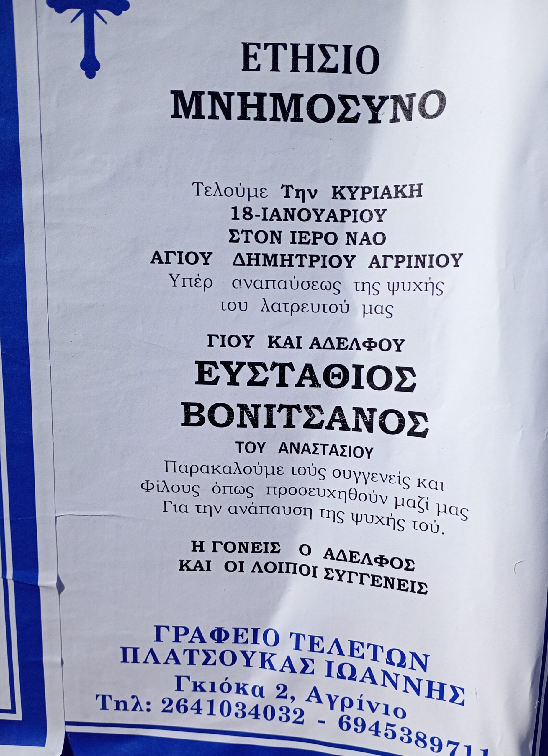 ΜΝΗΜΟΣΥΝΟ 18/1/2026 – ΕΥΣΤΑΘΙΟΣ Α. ΒΟΝΙΤΣΑΝΟΣ ΕΤΗΣΙΟ
