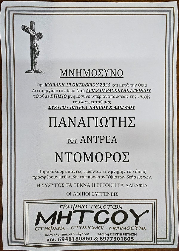 ΜΝΗΜΟΣΥΝΟ 19/10/2025 – ΠΑΝΑΓΙΩΤΗΣ Α. ΝΤΟΜΟΡΟΣ ΕΤΗΣΙΟ