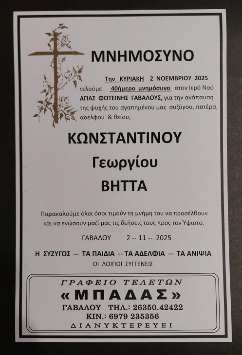 ΜΝΗΜΟΣΥΝΟ 2/11/2025 – ΚΩΝΣΤΑΝΤΙΝΟΣ Γ. ΒΗΤΤΑΣ 40ΗΜΕΡΟ