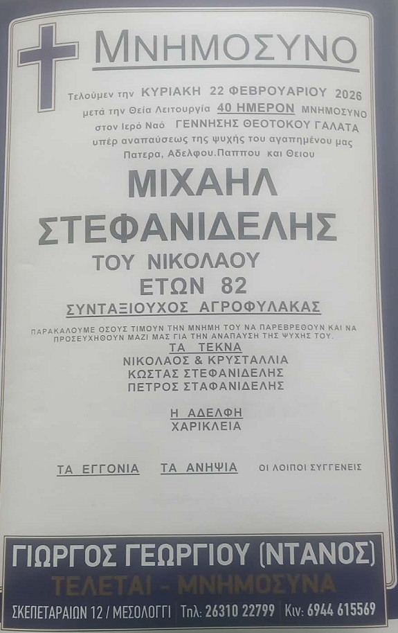 ΜΝΗΜΟΣΥΝΟ 22/2/2026 – ΜΙΧΑΗΛ Ν. ΣΤΕΦΑΝΙΔΕΛΗΣ 40ΗΜΕΡΟ