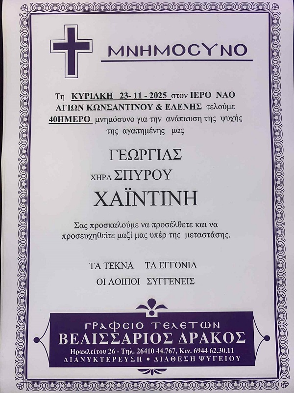 ΜΝΗΜΟΣΥΝΟ 23/11/2025 – ΓΕΩΡΓΙΑ Σ. ΧΑΪΝΤΙΝΗ 40ΗΜΕΡΟ