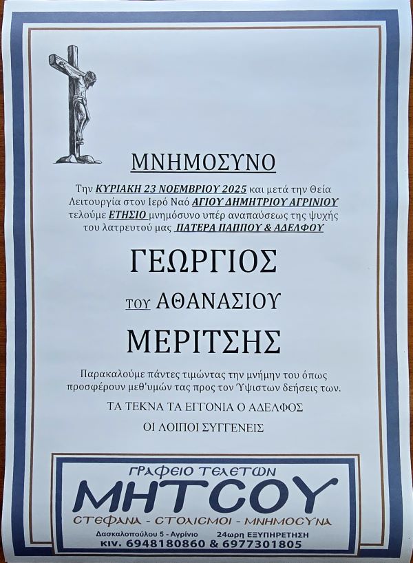 ΜΝΗΜΟΣΥΝΟ 23/11/2025 – ΓΕΩΡΓΙΟΣ Α. ΜΕΡΙΤΣΗΣ ΕΤΗΣΙΟ