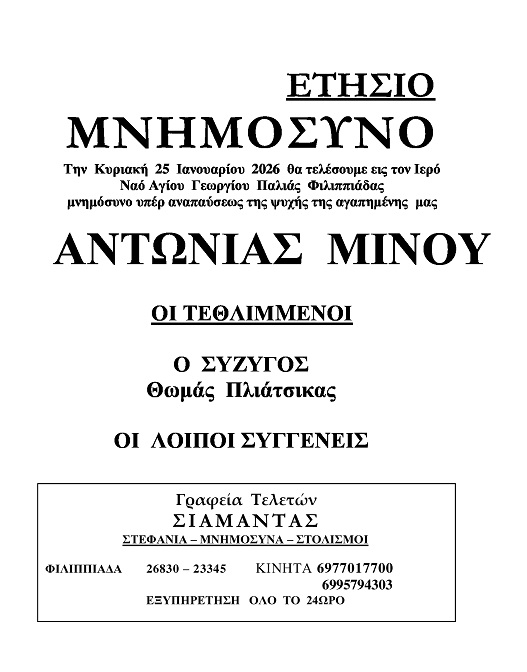 ΜΝΗΜΟΣΥΝΟ 25/1/2026 – ΑΝΤΩΝΙΑ ΜΙΝΟΥ ΕΤΗΣΙΟ
