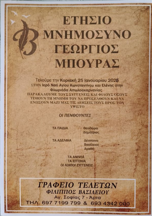 ΜΝΗΜΟΣΥΝΟ 25/1/2026 – ΓΕΩΡΓΙΟΣ ΜΠΟΥΡΑΣ ΕΤΗΣΙΟ