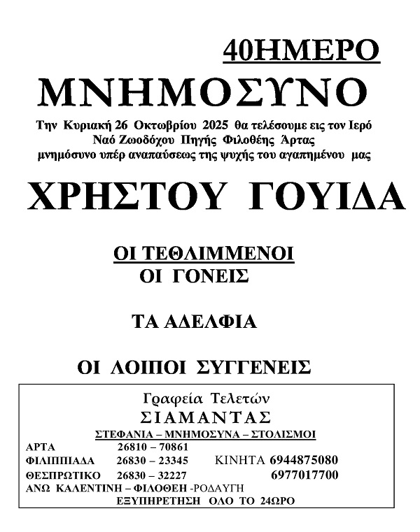ΜΝΗΜΟΣΥΝΟ 26/10/2025 – ΧΡΗΣΤΟΣ ΓΟΥΙΔΑΣ 40ΗΜΕΡΟ