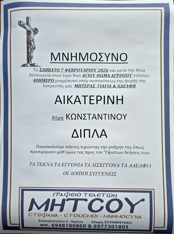 ΜΝΗΜΟΣΥΝΟ 7/2/2026 – ΑΙΚΑΤΕΡΙΝΗ Κ. ΔΙΠΛΑ 40ΗΜΕΡΟ