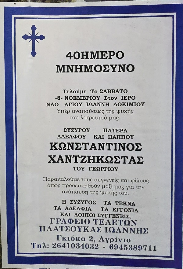 ΜΝΗΜΟΣΥΝΟ 8/11/2025 – ΚΩΝΣΤΑΝΤΙΝΟΣ Γ. ΧΑΝΤΖΗΚΩΣΤΑΣ 40ΗΜΕΡΟ