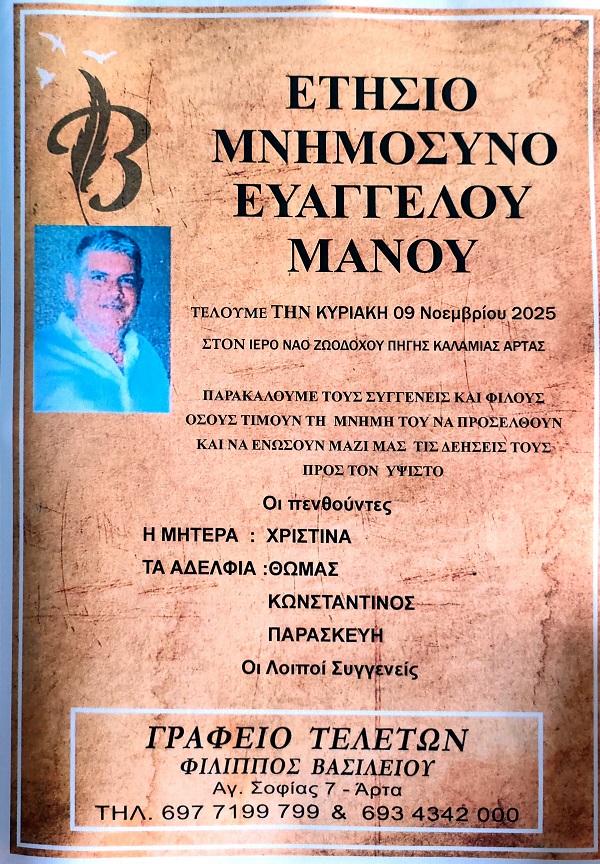 ΜΝΗΜΟΣΥΝΟ 9/11/2025 – ΕΥΑΓΓΕΛΟΣ ΜΑΝΟΣ ΕΤΗΣΙΟ